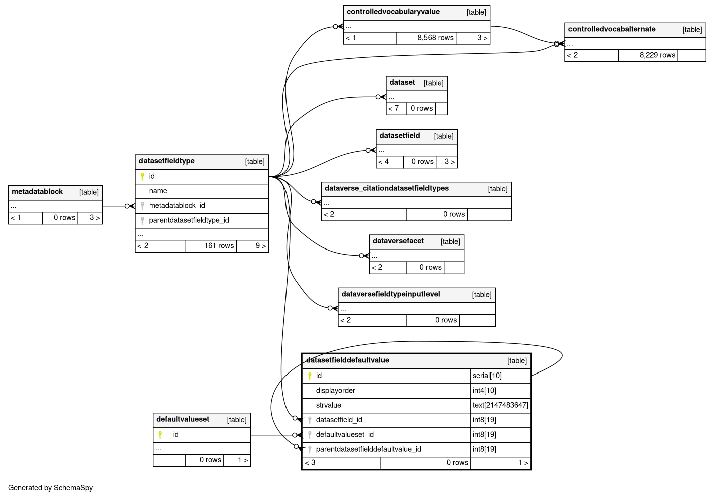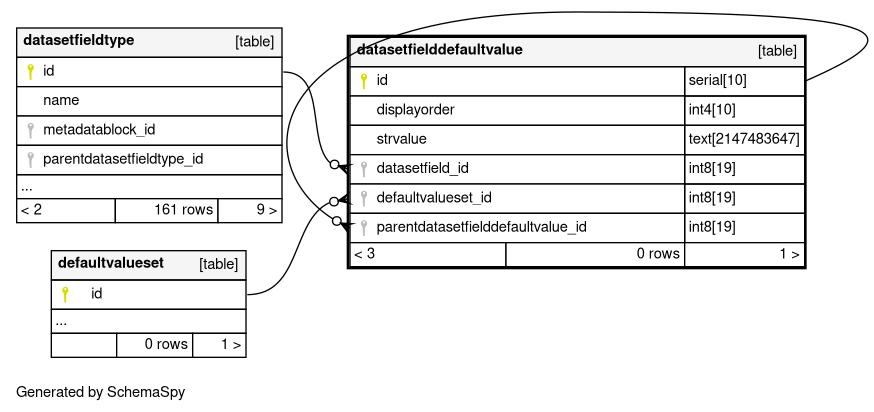 | datasetfielddefaultvalue_pkey | Primary key | Asc | id |