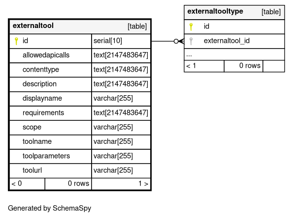 | externaltool_pkey | Primary key | Asc | id |