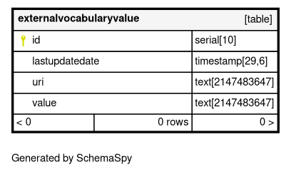 | externalvocabularyvalue_pkey | Primary key | Asc | id |