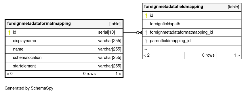 | foreignmetadataformatmapping_pkey | Primary key | Asc | id |