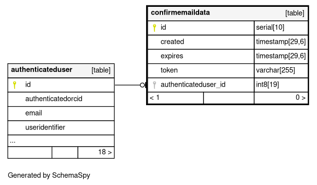 | confirmemaildata_authenticateduser_id_key | Must be unique | Asc | authenticateduser_id |