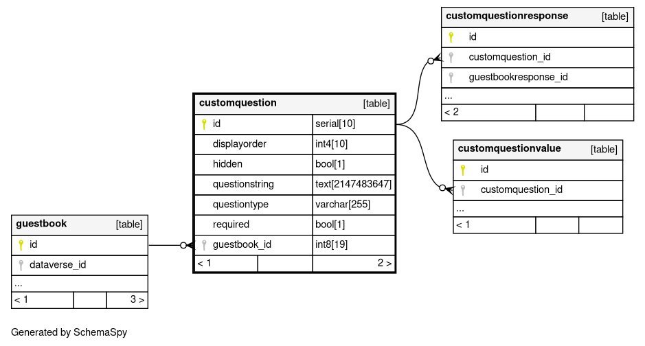 | customquestion_pkey | Primary key | Asc | id |