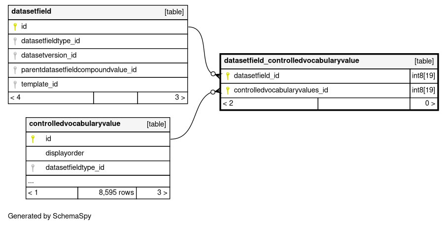 | datasetfield_controlledvocabularyvalue_pkey | Primary key | Asc/Asc | datasetfield_id + controlledvocabularyvalues_id |