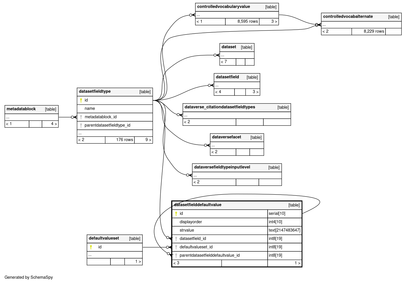 | datasetfielddefaultvalue_pkey | Primary key | Asc | id |