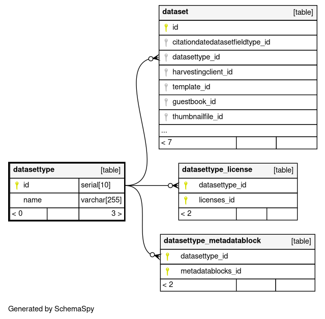 | datasettype_pkey | Primary key | Asc | id |