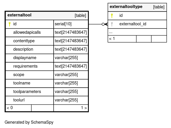 | externaltool_pkey | Primary key | Asc | id |