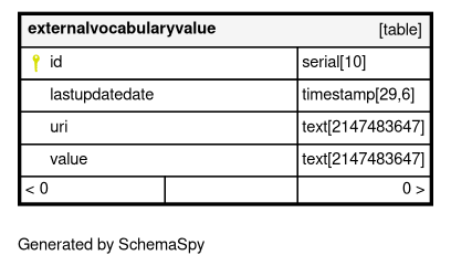 | externalvocabularyvalue_pkey | Primary key | Asc | id |
