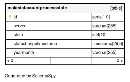 | id | serial | 10 | √ | nextval('makedatacountprocessstate_id_seq'::regclass) |