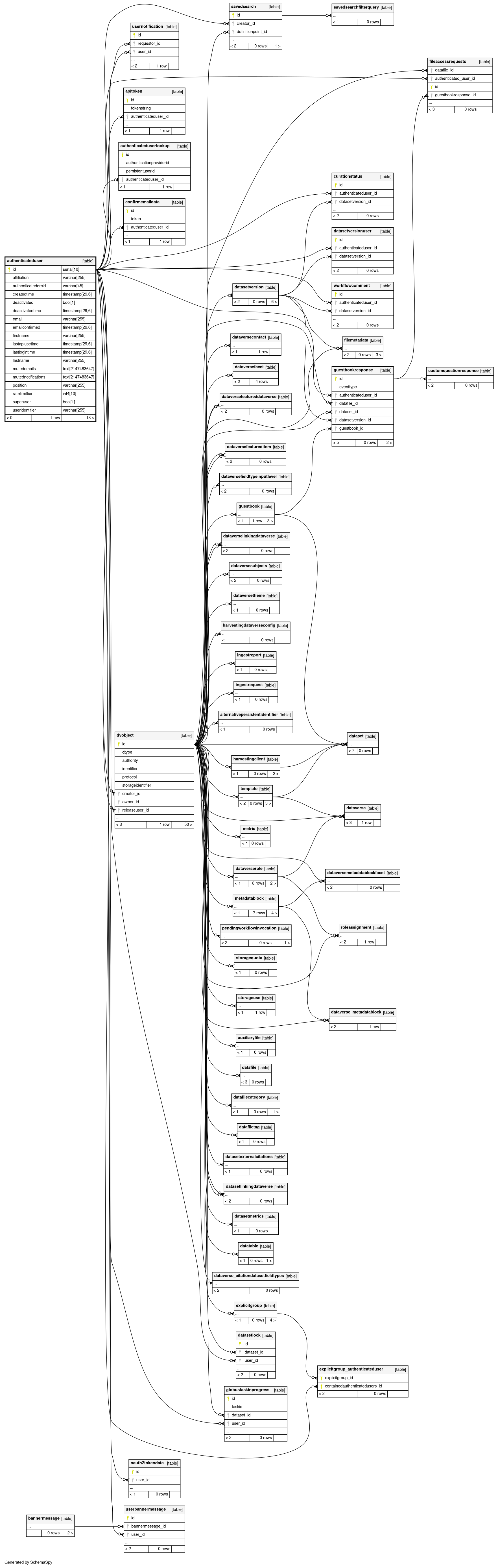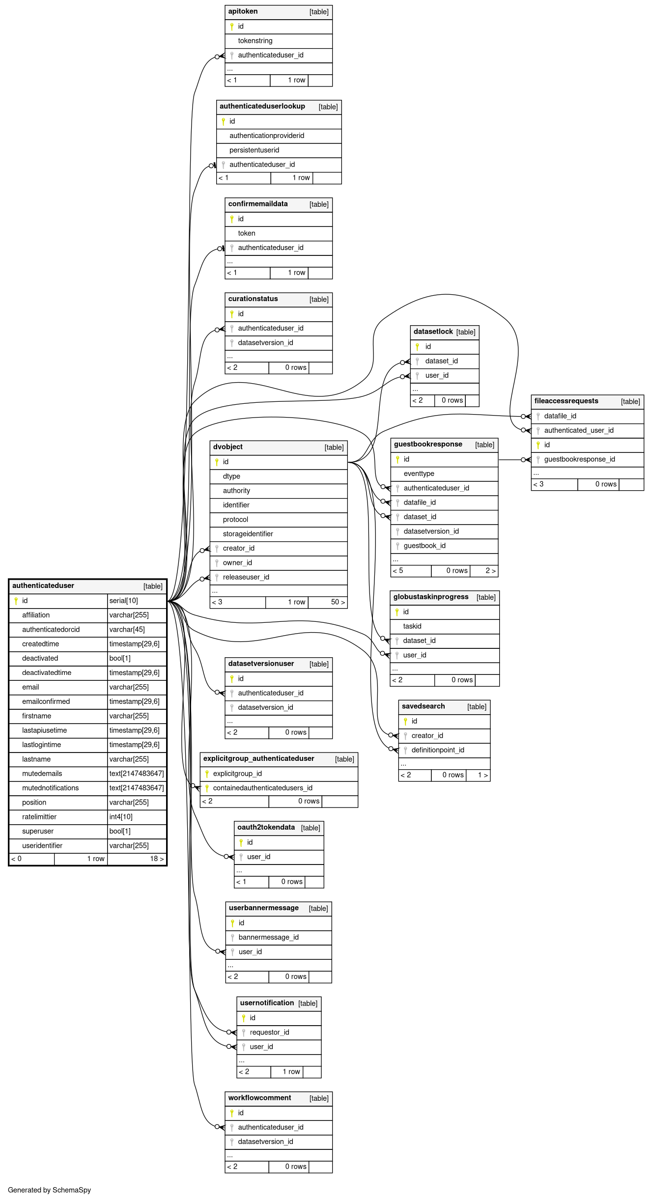 | authenticateduser_pkey | Primary key | Asc | id |