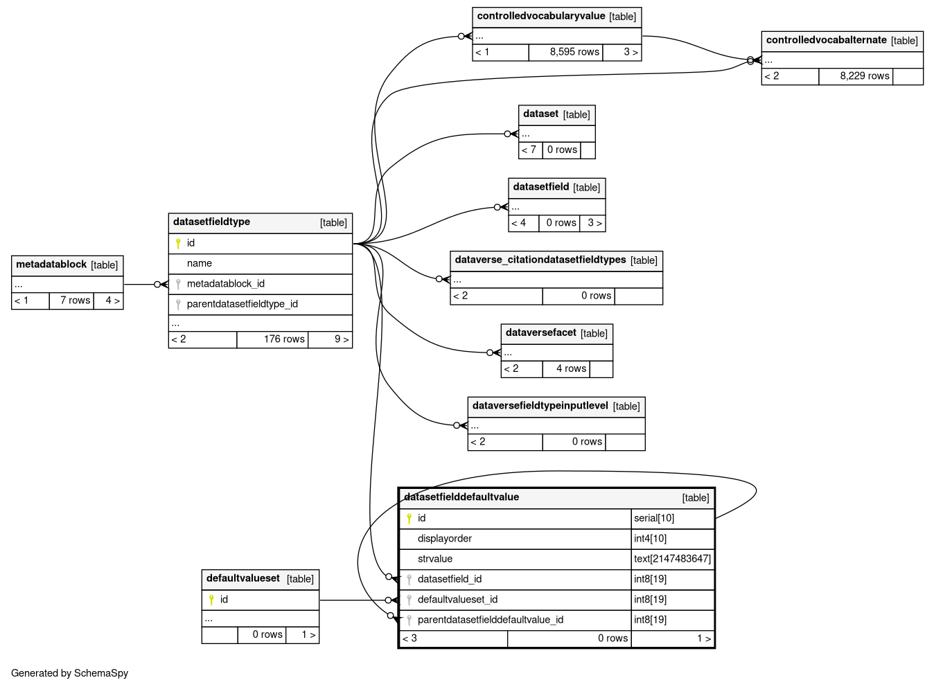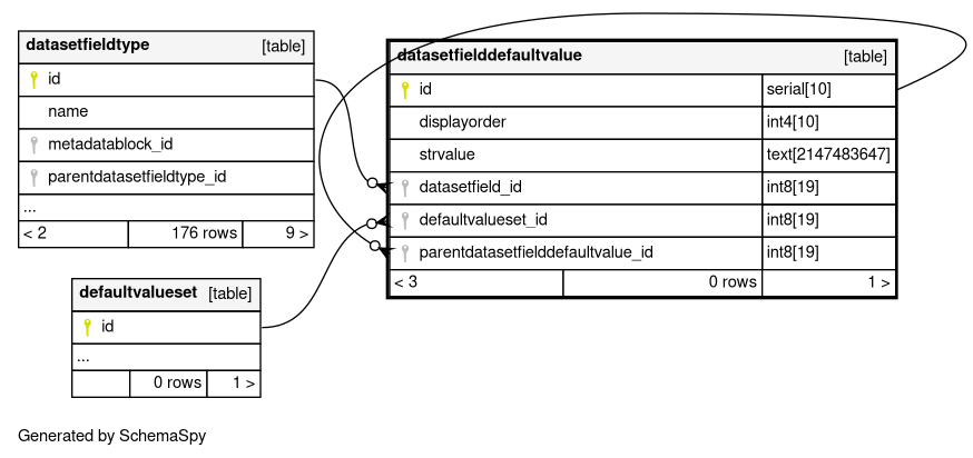 | datasetfielddefaultvalue_pkey | Primary key | Asc | id |