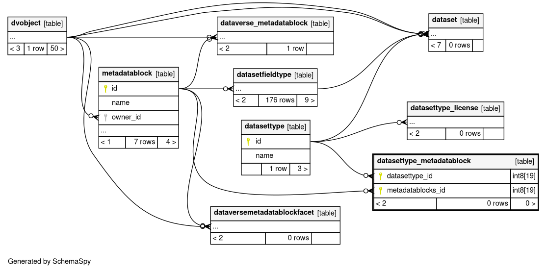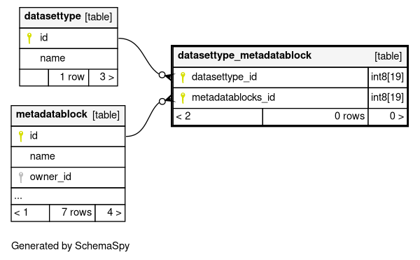 | datasettype_metadatablock_pkey | Primary key | Asc/Asc | datasettype_id + metadatablocks_id |