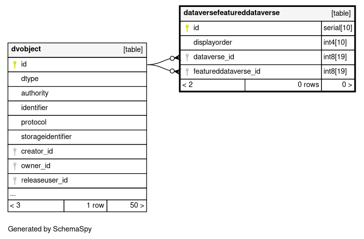 | dataversefeatureddataverse_pkey | Primary key | Asc | id |