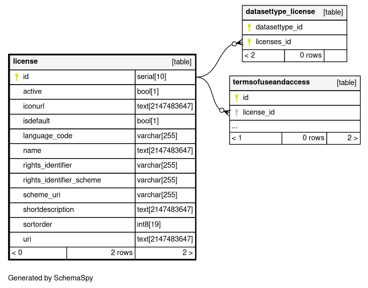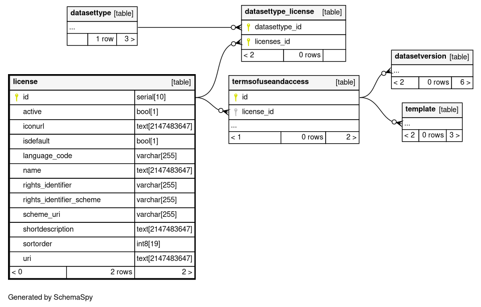 | license_pkey | Primary key | Asc | id |