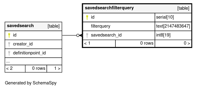 | savedsearchfilterquery_pkey | Primary key | Asc | id |
