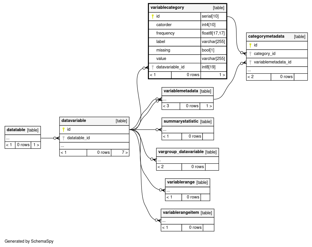 | variablecategory_pkey | Primary key | Asc | id |